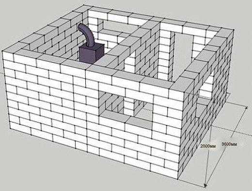 Если в бане будет предусмотрена капитальная кирпичная печь, то для нее нужно будет сделать отдельный фундамент, не связанный с основным. Причем печь можно поставить как в парном отделении, так и встроить в стену для закладки топлива из другого помещения. Возможность осуществить это своими руками без какого-либо риска для жизни дает такое свойство пенобетона как устойчивость к возгоранию. Порог воздействия на пеноблок огнем, после которого он начнет деформироваться составляет 8 часов.