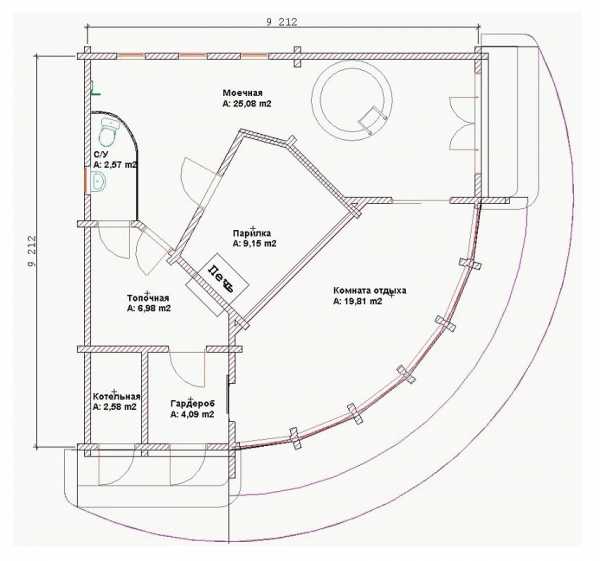 О габаритных размерах помещений и планировке бань можно узнать здесь.