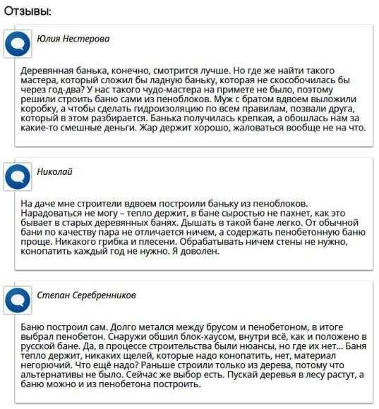 Отзывы владельцев бань из ячеистого бетона разделились на 2 крайние противоположности: от восторженных до крайне негативных.