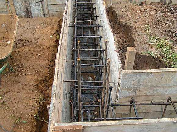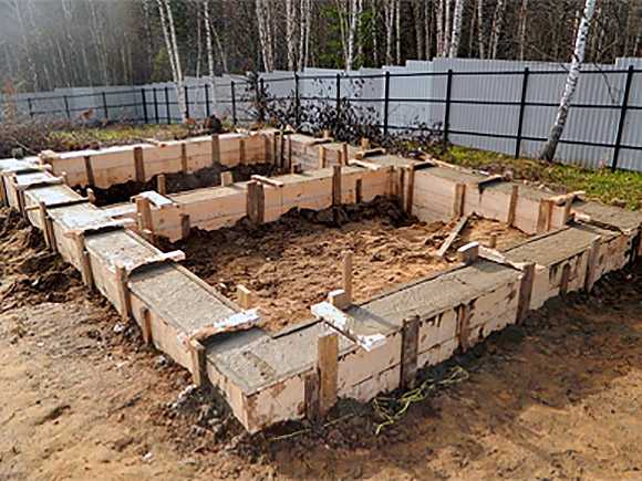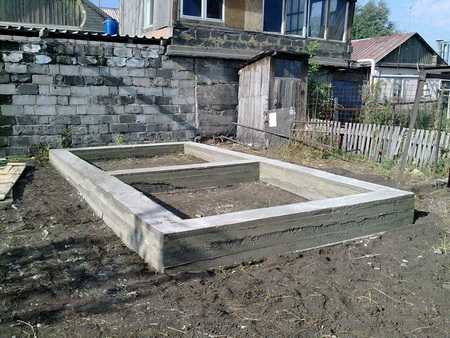 - Прежде всего, необходимо создать фундамент. При этом проекты бани из пеноблоков предполагает, что основание будет иметь ленточный тип.