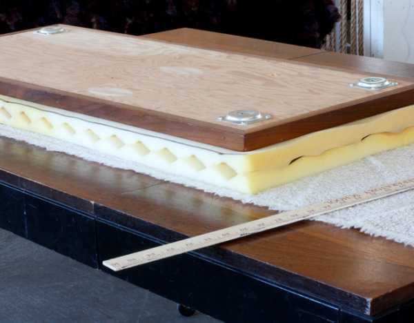 ΠΠ»Ρ ΠΌΡΠ³ΠΊΠΎΠΉ ΠΎΠ±ΠΈΠ²ΠΊΠΈ ΡΠΈΠ΄Π΅Π½ΡΡ ΠΏΠΎΠ΄Π³ΠΎΡΠ°Π²Π»ΠΈΠ²Π°Π΅ΡΡΡ ΠΊΡΡΠΎΠΊ ΠΏΠ»ΠΎΡΠ½ΠΎΠΉ ΡΠΊΠ°Π½ΠΈ, ΠΈΠ· ΠΊΠΎΡΠΎΡΠΎΠ³ΠΎ Π²ΡΡΠ΅Π·Π°Π΅ΡΡΡ ΡΡΠ°Π³ΠΌΠ΅Π½Ρ Π½Π΅ΠΎΠ±Ρ ΠΎΠ΄ΠΈΠΌΠΎΠ³ΠΎ ΡΠ°Π·ΠΌΠ΅ΡΠ° Ρ ΡΡΠ΅ΡΠΎΠΌ ΠΏΠΎΠ΄Π²ΠΎΡΠ°ΡΠΈΠ²Π°Π½ΠΈΡ Π΅Π³ΠΎ Π²Π½ΡΡΡΡ ΠΏΠΎ ΠΊΡΠ°ΡΠΌ. ΠΠ° ΡΠΈΠ΄Π΅Π½ΡΠ΅ ΠΈΠ· ΠΠ‘Π ΠΈΠ»ΠΈ ΠΠΠ€ ΠΏΡΠΈΠΊΠ»Π΅ΠΈΠ²Π°Π΅ΡΡΡ ΠΊΡΡΠΎΠΊ ΠΏΠΎΡΠΎΠ»ΠΎΠ½Π°, Π²ΡΡΠ΅Π·Π°Π½Π½ΡΠΉ ΠΏΠΎ ΡΠΎΡΠΌΠ΅ ΠΈΠ·Π΄Π΅Π»ΠΈΡ. ΠΠ° Π½Π΅Π³ΠΎ ΡΠΊΠ»Π°Π΄ΡΠ²Π°Π΅ΡΡΡ ΡΠ»ΠΎΠΉ ΡΠΈΠ½ΡΠ΅ΠΏΠΎΠ½Π° ΡΠΎΠ³ΠΎ ΠΆΠ΅ ΡΠ°Π·ΠΌΠ΅ΡΠ°. ΠΠ°Π»Π΅Π΅ Π΄Π΅ΡΠ°Π»Ρ ΠΎΠ±ΡΡΠ³ΠΈΠ²Π°Π΅ΡΡΡ ΡΠΊΠ°Π½ΡΡ, ΠΊΠΎΡΠΎΡΠ°Ρ Π·Π°ΠΊΡΠ΅ΠΏΠ»ΡΠ΅ΡΡΡ Ρ Π½ΠΈΠΆΠ½Π΅ΠΉ ΡΡΠΎΡΠΎΠ½Ρ ΡΠΈΠ΄Π΅Π½ΡΡ Ρ ΠΏΠΎΠΌΠΎΡΡΡ ΡΠΊΠΎΠ±. ΠΠ΅ΠΎΠ±Ρ ΠΎΠ΄ΠΈΠΌΠΎ ΡΠ»Π΅Π΄ΠΈΡΡ, ΡΡΠΎΠ±Ρ ΠΏΠΎΠ²Π΅ΡΡ Π½ΠΎΡΡΡ ΠΏΠΎΠ»ΡΡΠΈΠ»Π°ΡΡ ΡΠΎΠ²Π½ΠΎΠΉ.