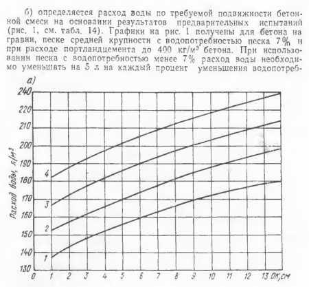 При применении цементов других марок и щебня (гравия) другой крупности и формы к табличным расходам материалов применяются поправочные коэффициенты (табл. 4). Объемная масса одного кубометра тяжелого бетона на щебне может быть принята равной 2400 кг, на гравии — 2350 кг. Исходя из этого, находится требуемое количество сортового крупного заполнителя соответствующего ГОСТ 26633-91, 8267-93.В приведенном примере подбора состава бетона полученные результаты весьма приблизительны. В реальных условиях делают несколько разных по составу замесов и изготавливают образцы бетона, которые затем испытывают и только после этого бетону назначается номинальный класс прочности.