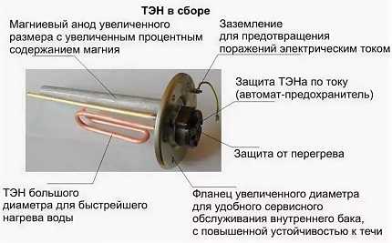 Облегчает борьбу с осевшими на поверхности нагревательного элемента солями кальция «жертвенный» магниевый анод. Работает он по принципу гальванического взаимодействия проводников. Более электроотрицательный магний принимает на себя ионы кислорода, препятствуя тем самым разрушению железа.
