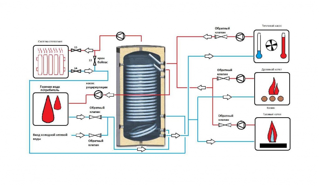Так, например, когда сжигается топливо для отопления и необходимо распределить тепло по одному или нескольким зданиям, это можно сделать с помощью котла.