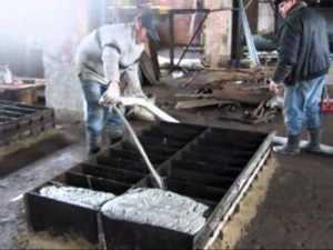 - Производится замешивание смеси в специальной бетономешалке с наклонными лопастями. Это нужно для предотвращения исчезновения пузырьков воздуха. Рабочая смесь состоит из портландцемента марки М 400 Д 20, песка фракции 0,02, без частиц мусора и грязи с влажностью не более 5%, пенообразователя (существует несколько видов), воды и фиброволокна для армирования. При этом вначале фиброволокно растворяют в воде для более качественного армирования.
