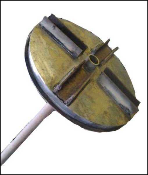 К распределителю приваривается крыльчатка с закрепленными на ней 5-сантиметровыми лопастями, изготовленными из той же стали. Сверху приваривается труба ø6 см таким образом, чтобы посередине встало проделанное ранее отверстие.
