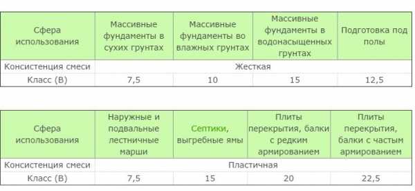 Выводом из вышесказанного является определение класса бетона. Если говорить просто, то это предел прочности, после достижения которого происходит разрушение. Класс бетона имеет определенные пределы для качества и количества каждого входящего в его состав компонента. Для простоты ведения расчетов предусмотрены специальные таблицы.