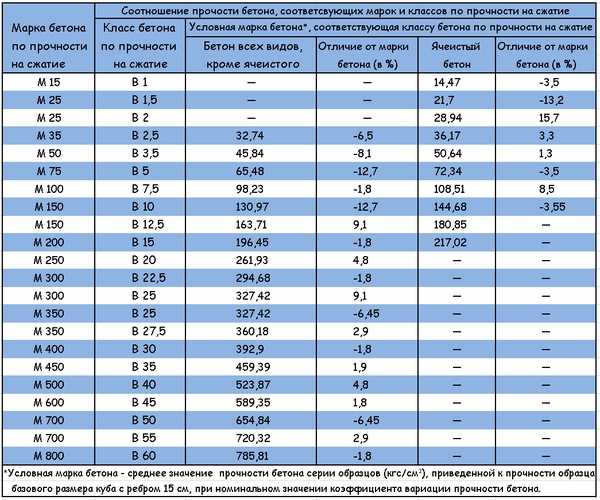 Следует отметить, что марку бетона практически никто не использует. Однако для понимания некоторых старых типовых проектов и прочих инженерных решений следует запомнить, где можно найти таблицу соотношений по прочности на сжатие.