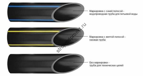 Водопроводные ПНД трубы можно отличить от газовых по синей и желтой полосам. Причем газовые трубы можно применять для водопровода, но, наоборот делать нельзя.