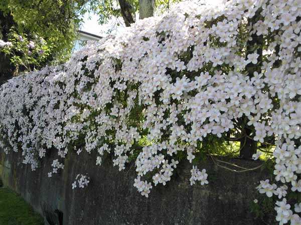 И, вообщем-то, любую стену саду — главное, чтобы была опора для цветов.