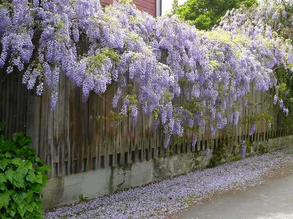 Глициния больше подходит для южных районов. Цветет она настолько буйно, что не видно листьев.