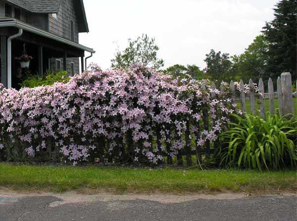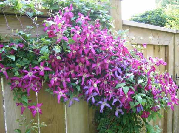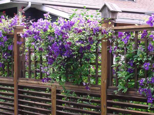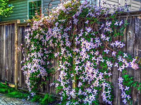 Клематис цветет на протяжении всего лета и может украсить ваш забор потрясающими синими, пурпурными, розовыми, желтыми или белыми цветами.