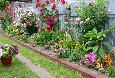- Необходимо учитывать габариты взрослых растений и поэтому нужно высаживать цветущие кустарники на расстоянии 1 м от забора, а цветы — не ближе 0,5 м.