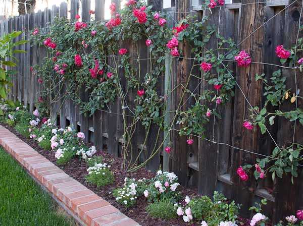 Вовремя обрезайте и формируйте розы на заборе, так, чтобы у него был аккуратный и привлекательный вид.