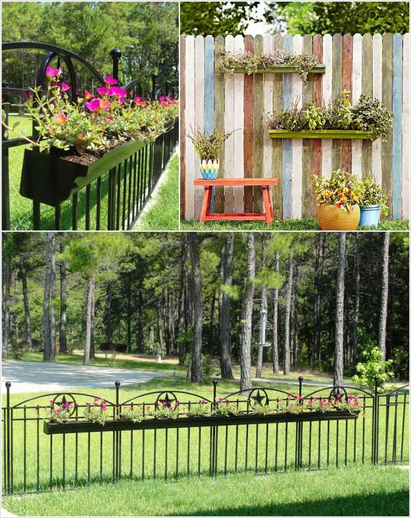 Забор вокруг дачного участка можно сделать с любой отделкой, но даже самая красивая не сравнится с цветочным оформлением. Ограждения располагаются как на солнечной стороне, так и в тени. Соответственно, прежде чем сделать композицию, необходимо решить, какие посадить цветы, чтобы им хватало получаемого освещения. В уголках сада, куда попадает мало солнечного света, можно развесить ящички с неприхотливыми суккулентными растениями.
