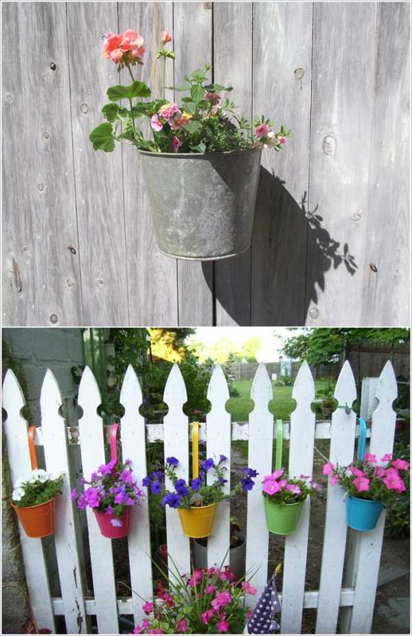 Высокий забор можно сделать интересней и декоративней, украсив его развешенными цветами в горшках. Для этого подойдут любые низкорослые однолетники. Хорошо будет смотреться петунья, настурция, ипомея.Чтобы сделать такое украшение для забора, понадобятся: