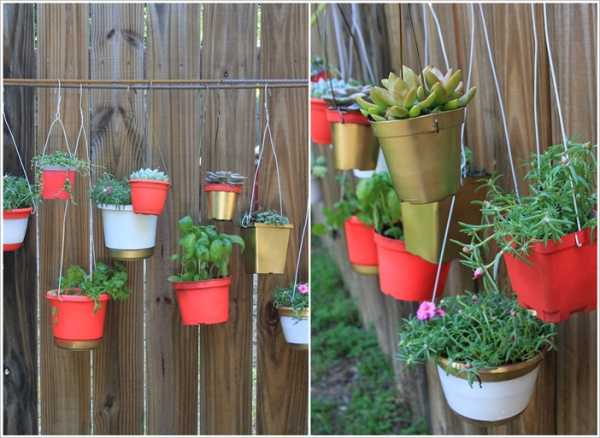 Разросшись, цветы станут оригинальным украшением ограждения. На зиму горшочки можно убрать и весной повесить снова.