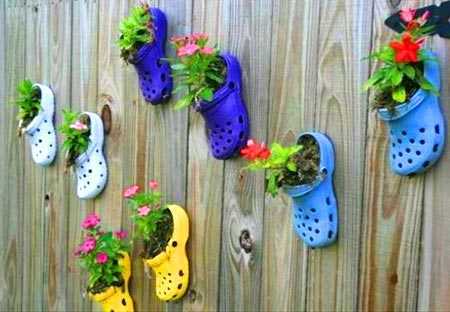 Для этого можно прибегнуть к любому имеющемуся под рукой материалу: керамической посуде со сколами, кухонной утвари и даже старой, вышедшей из обихода обуви.