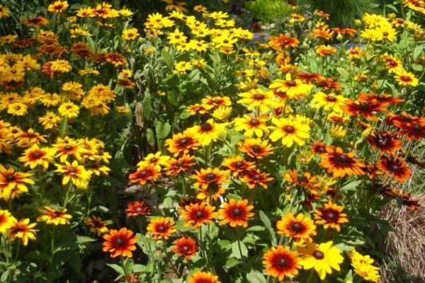 рудбекияРудбекия и эхинацея – это двухлетние растения, которые цветут на второй год после посадки желтыми, оранжевыми и розовыми ромашками. Часто эти цветы размножаются самосевом и, посадив однажды несколько штук, можно через пару лет все также обнаружить на привычном месте выросшие самостоятельно однолетние и двулетние кустики.
