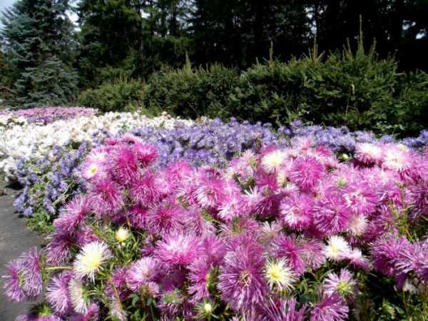 Если пионы ассоциируются с последним звонком, то астры, безусловно, в почете на 1 сентября и День учителя. Еще бы, ведь они распускаются с конца августа и до середины октября, бывают разных размеров, раскрасок и форм. Астры – цветы многолетние, неприхотливые, фото клумбы с ними доказывает, насколько эффектно они могут выглядеть.