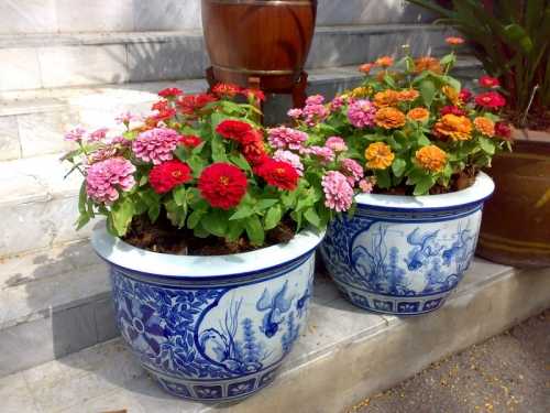 - Для пышного цветения, в ограниченном по объему вазоне, нужно правильно подготовить землю. Циния предпочитает богатый органическими удобрениями плодородный грунт. Кислые или щелочные почвы для нее не подходят.