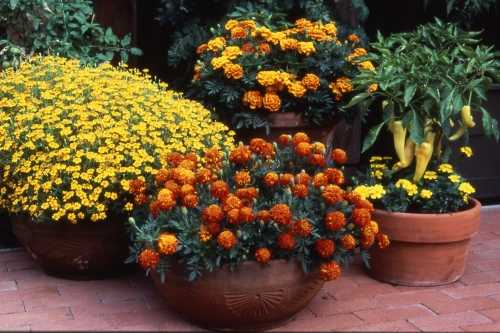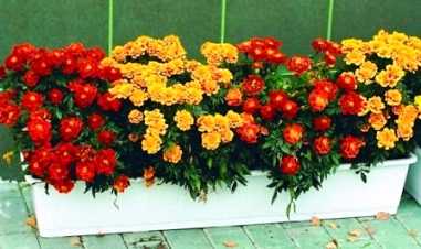 - Для уличных вазонов лучше всего подойдут низкорослые сорта бархатцев.