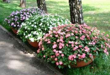 Для выращивания в уличных вазонах лучше всего подойдут однолетние сорта бальзаминов. Радовать цветением они будут с начала лета и до поздней осени.