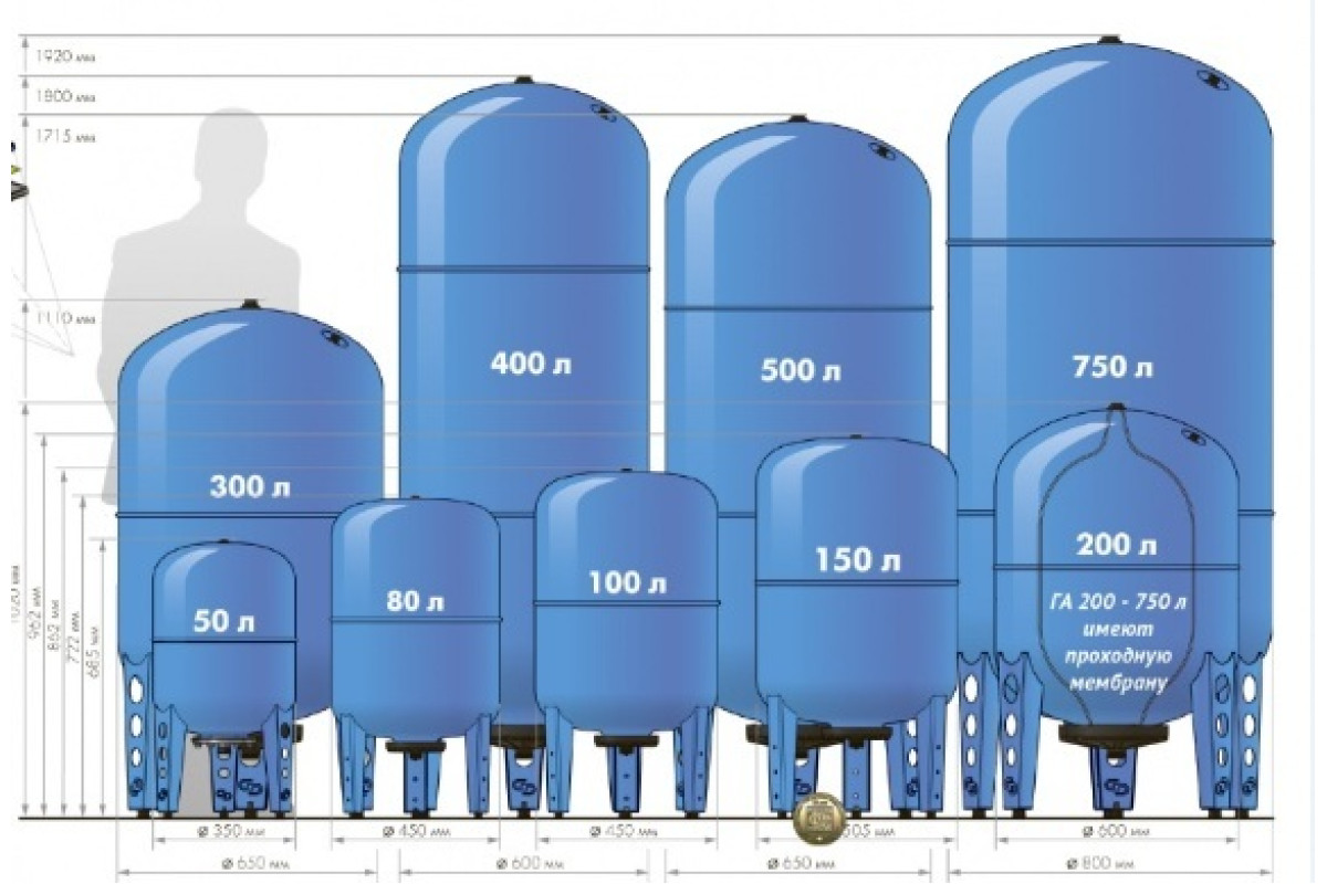 Несмотря на то, что конструкции с диафрагмой не доступны вместимостью более 40 галлонов, поршневые конструкции в настоящее время поставляются вместимостью до 200 галлонов в одной емкости.