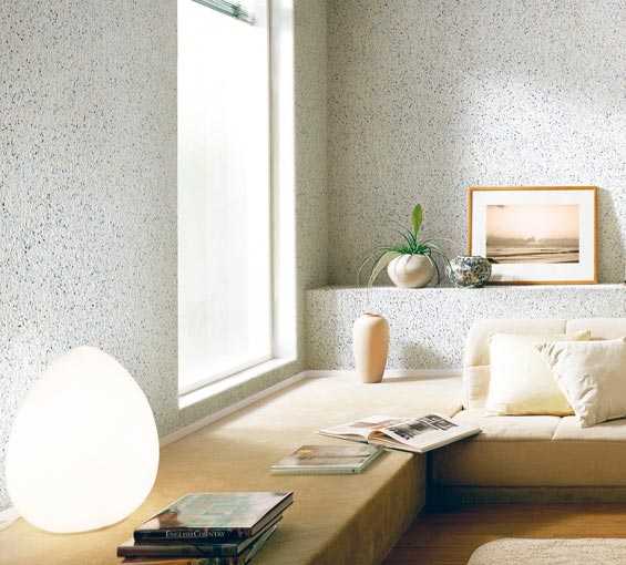 Типы и соотношение ингредиентов самые разнообразные, связующее вещество при высыхании помогает смеси образовывать разнообразные фактуры и рельефы. Грамотное исполнение при помощи этого материала придает стенам полностью законченный вид, без необходимости финишного окрашивания или оклейки обоями.