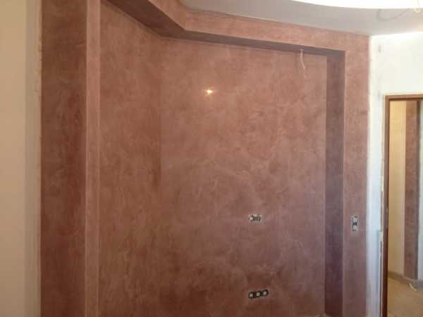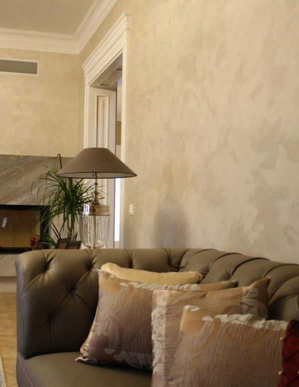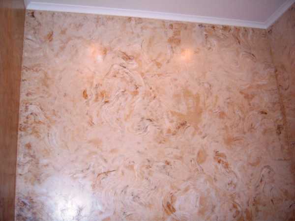 Этот отделочный материал считается самым дорогим и сложным в работе. Наполнитель – мраморная крошка. Превосходно вписывается в античный или классический интерьер. Позволяет создавать эффект мраморного рисунка. С помощью венецианской штукатурки можно добиваться совершенно невероятных эффектов, но при отделке квартиры своими руками новичкам ее использовать не рекомендуется.