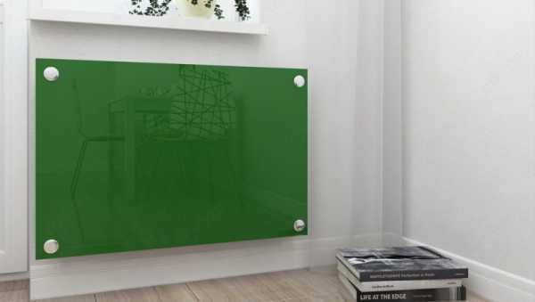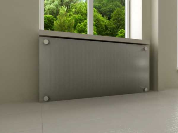 - Экран из стекла обычно представляет собой толстый стеклянный лист, который крепится к стене кронштейнами из стали. Обеспечивают отличный проход тепла, доступ к радиаторам и наладочным элементам, стильный вид помещения.