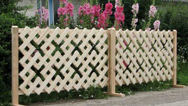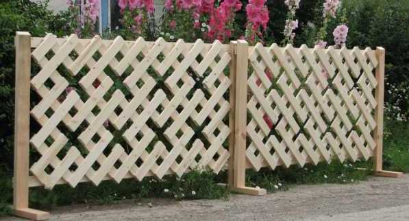 Забор — частокол- Шпалера, выполненная в виде решетки, служит замечательным каркасом для растений