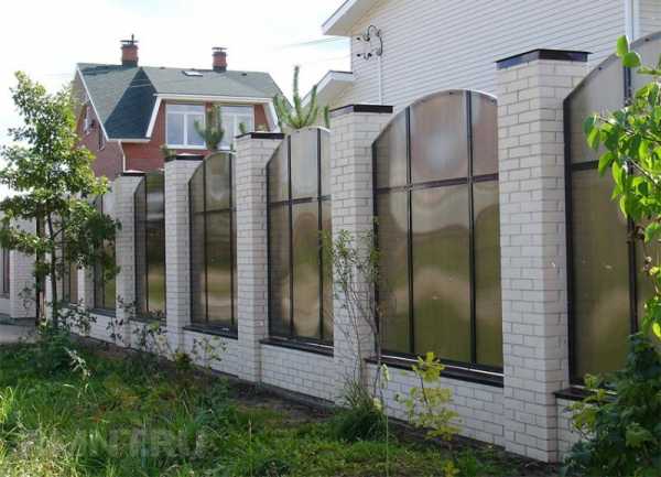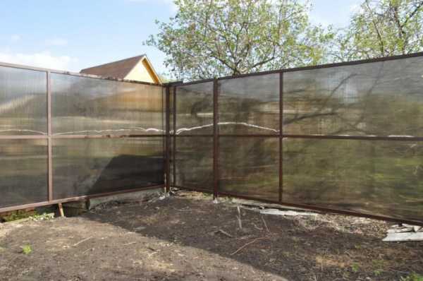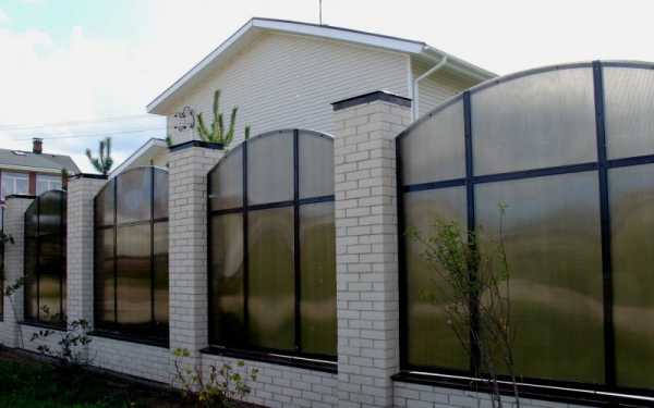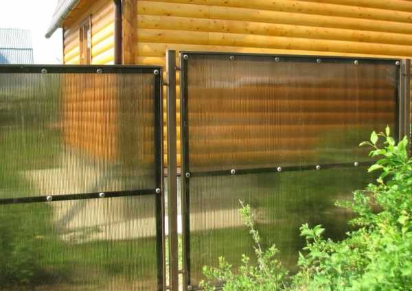 Это забор из листов, изготовленных из поликарбоната, они закрепляются на каркас из металла.