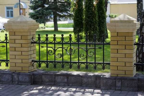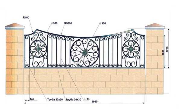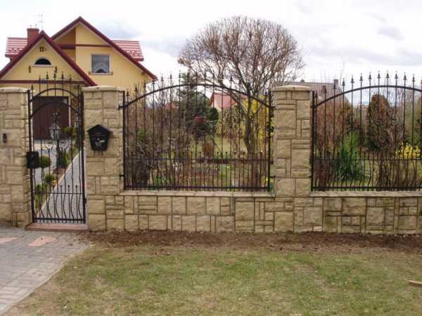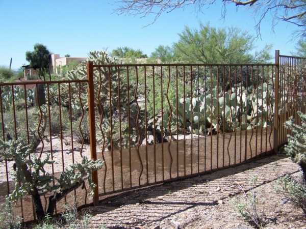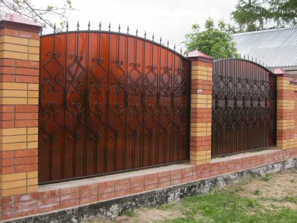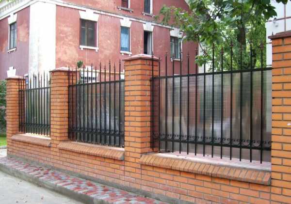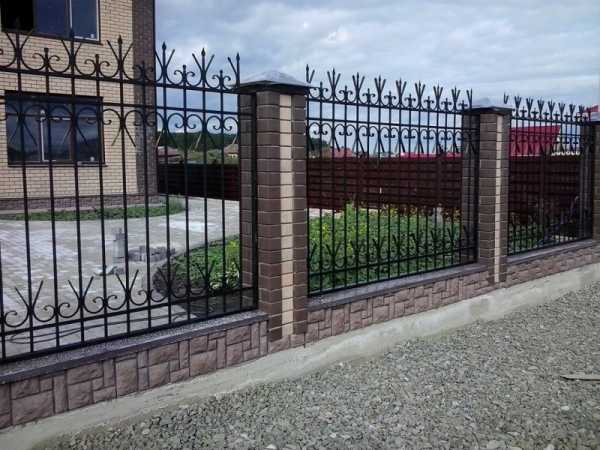 Материал дорогостоящий. Может быть массово собранным на заводе, так и созданным по индивидуальному заказу мастером. Такой забор может быть выполнен в самом разном стиле. Он будет служить долго. Выглядит очень благородно. В большинстве своем кованую или сваренную решетку размещают между столбами из кирпича.