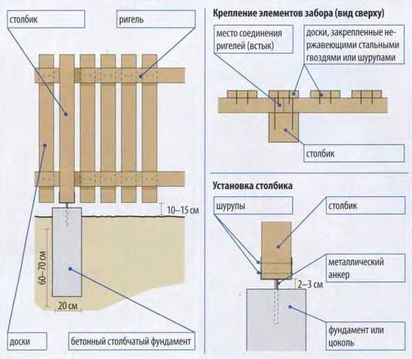 Сами ограждения из дерева, входящую в грунт часть дерева обжигают или опускают в жидкий рубероид. Это забор из досок, секции «решетка» часто огораживают клумбу с плетущимися растениями (василиск, посконник и др.).