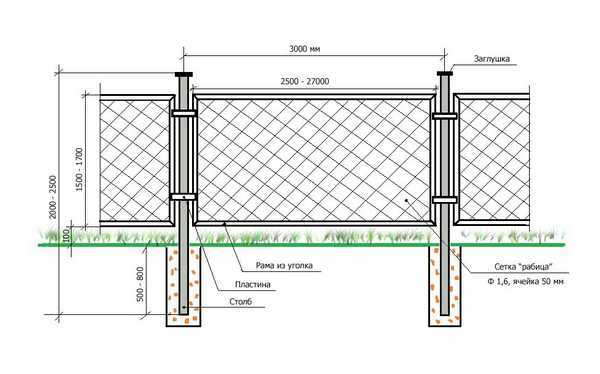 Для такого забора не понадобится заранее подготовленный фундамент. Он фиксируется на поверхности земли при помощи длинных прутьев. Длина таких опор достигает от 1,5 до 3 м. в результате этого, такая конструкция способна выдержать любые климатические условия.