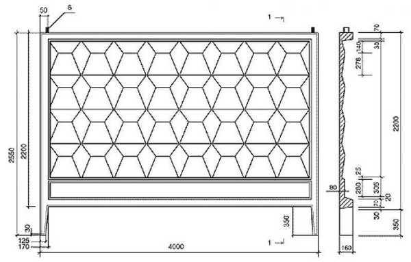 Массивные декоративные бетонные заборы серого цвета. Инновационные технологии позволяют украсить лицевую сторону красивым рисунком. Для этого понадобятся формочки, которые можно смастерить своими руками. В матрицу на 24 ч залить бетон, когда формы высохнут, их можно устанавливать.