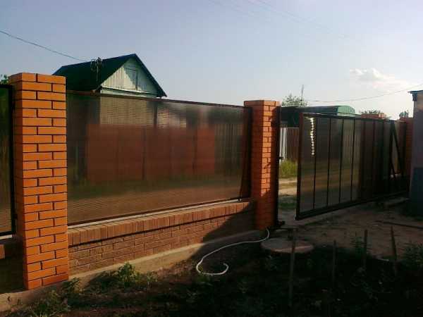 С помощью пластиковых листов можно сделать забор для дачи с воротами и калиткой. Для этого используют усиленные конструкции в виде металлического каркаса. Основная часть деталей выполнена из высоко прочной пластмассы.