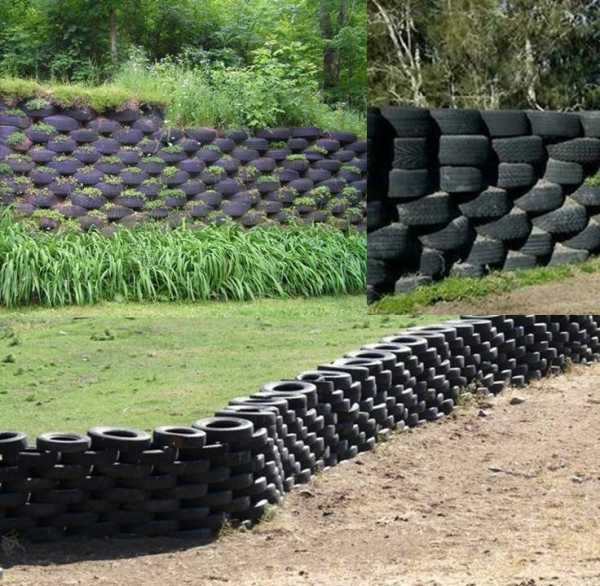 Можно использовать старые шины от автомобилей. Даже бутылки от пива можно закапывать горлышком в землю. Если выбрать разные цвета, то получится орнамент.