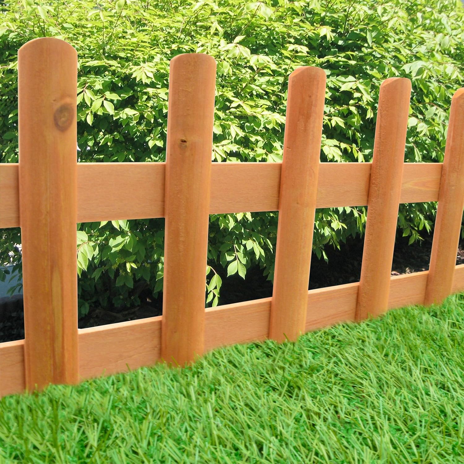 Также для ограждения клумбы можно сделать забор из дерева. Материал практически всегда гармонично вписывается в дизайн участка.