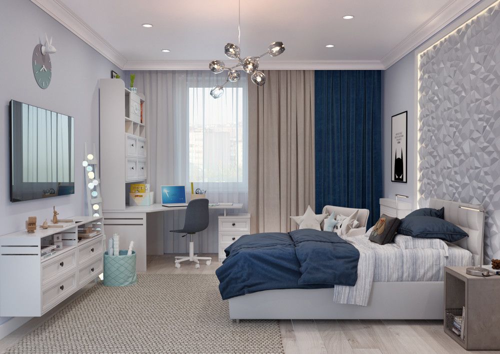 7-14 лет. Дизайн комнаты 14 кв. м для школьника
