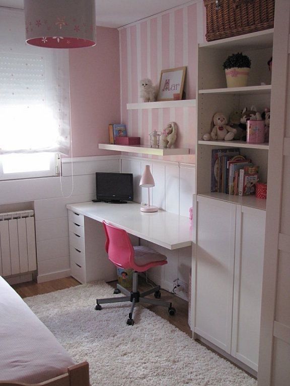В 11-12 лет у подростков уже появляются коллекции собственных любимых вещей: это могут быть книги, музыкальные альбомы, фигурки аниме-героев. Все это хочется красиво расставить, поэтому в спальне должен быть хотя бы небольшой стеллаж или несколько открытых полок.