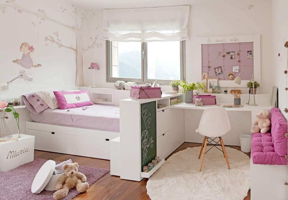 Такая спальня подойдет для девочки 7-10 лет, которая еще играет в игрушки.