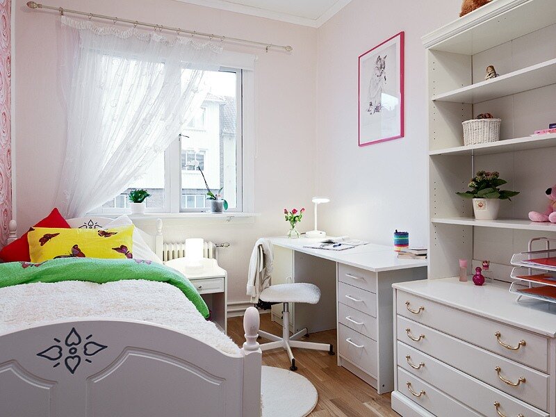 Наконец продумайте, как вы будете обновлять интерьер в течение ближайших лет. Дети вырастут, изменятся их потребности, интересы и вкусы. Обстановка для первоклассника вряд ли понравится бунтарю 13-14 лет. Оптимальный вариант — выбрать качественную базовую отделку и универсальную мебель, а менять настроение спальни с помощью отдельных элементов: текстиля, игрушек, декора, настенных стикеров и т.