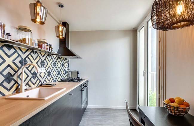 Наиболее доступный вариант облицовки фартука, предлагающий огромный выбор изделий, которые можно подобрать для кухни в любом стиле.
