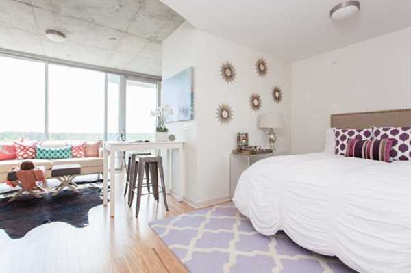 Когда вы думаете о современном жилье, скорее всего, представляете четкие линии и яркий свет. Эта планировка сочетает яркие цвета с девственно-белыми стенами. Естественный свет занимает все пространство, проникая через окна на всю стену и стеклянные балконные двери.