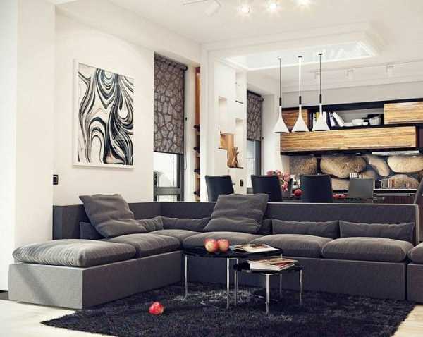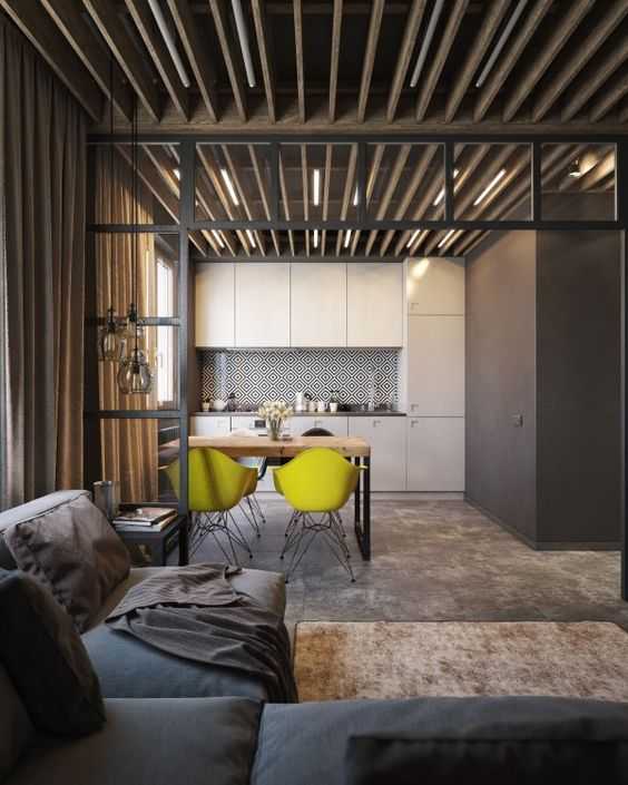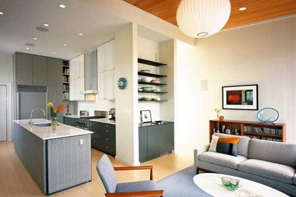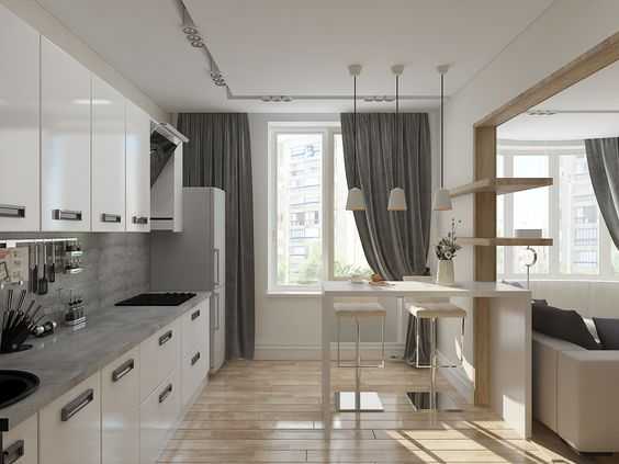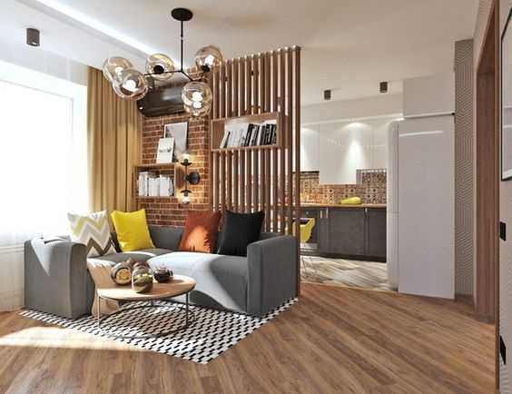С функцией разделителя между кухней и гостиной легко справится барная стойка, одновременно выполняющая роль обеденного стола; сама обеденная зона со столом и креслами; большой диван или шкаф. Объединение таких помещений, как гостиная и лоджия, ванная и часть коридора, кухня и кладовая позволяет увеличить полезную площадь, благодаря чему в квартире появляется больше места.