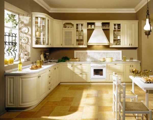 Один из широко распространенных вариантов цветового оформления. Бежевая кухня визуально расширяет пространство, к ней легко подобрать обои или плитку. Фурнитура из дерева или золотого цвета будет особенно удачно сочетаться именно с бежевым цветом.