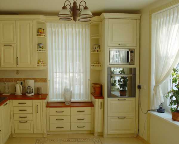 В случае с нестандартной формой кухни, то есть угловой кухни с окном, то здесь может быть искажение, к обстановке и собственно самому дизайну нужно подходить аккуратно.