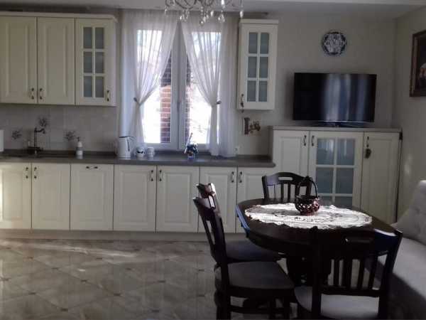 Как правило получаются большие кухни из ценных пород древесины благородных оттенков, часто рядом ставят большие обеденные столы из того же дерева. За таким просторным столом можно собираться большой компанией, а из-за близости кухонных поверхностей, хозяйке будет удобно подавать блюда и напитки.